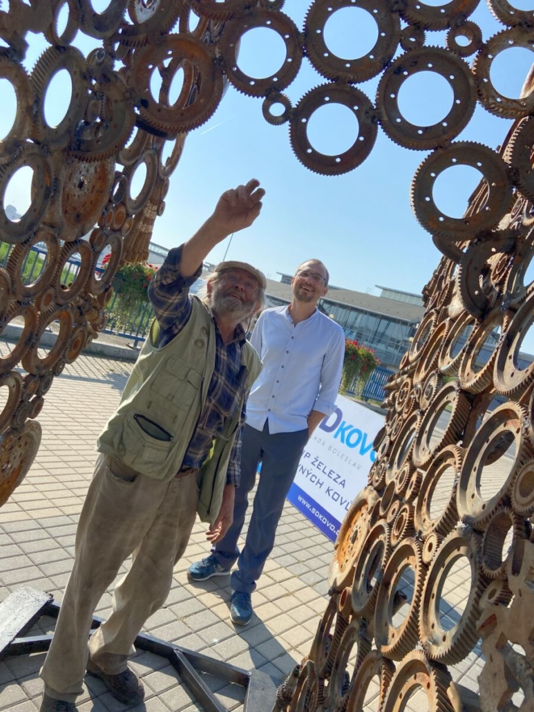 Popis díla: Andrej se přes počáteční komplikace s materiálem dostal do nejlepších rukou ve firmě SD – Kovo Mladá Boleslav, kde získal zázemí a spoustu kovošrotu ke tvorbě své unikátní sochy. Dílo je re-use socha z materiálu, který byl jednou vyhozen, ale mistr Németh ho vzkřísil. Použitím šrotu vytvořil toto dílo ve tvaru hlavy, kde dvě stěny z ozubených koleček jsou spojeny dalšími kolečky a ocelovými lany, a na tom několik barevných autíček. Dílo se může vyložit jako symbol lidského bytí, přemýšlení a toku myšlenek. Malá kolečka jsou jednoduché věci, větší složitější, části spojky a hřídele jsou pak těžké a komplikované věci.