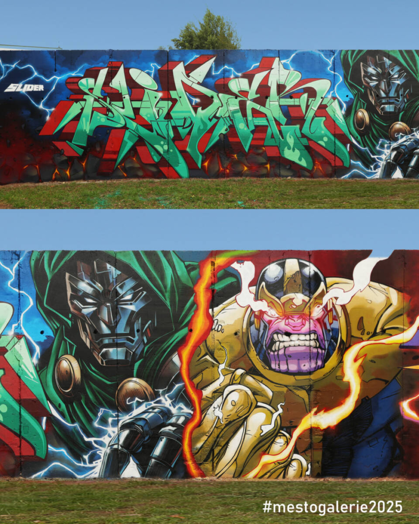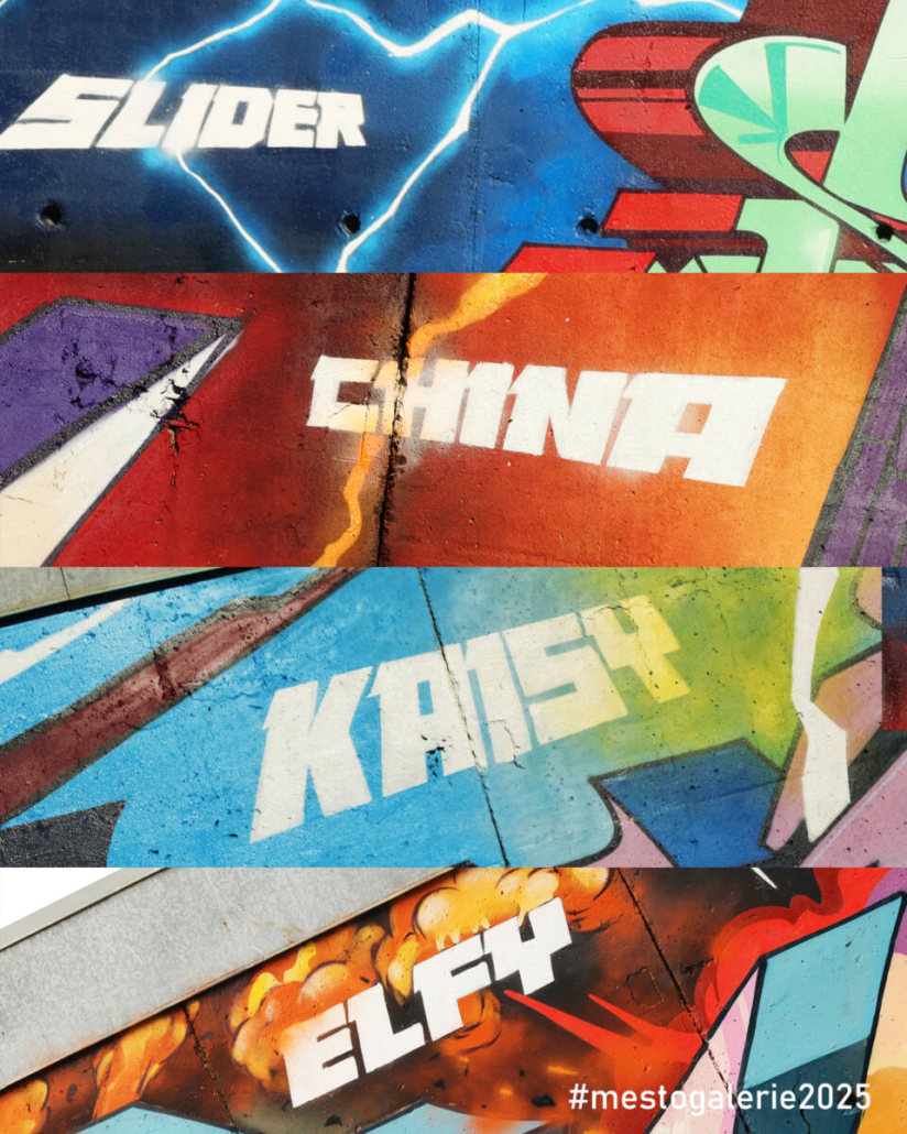 Město=Galerie 2025 Dvůr Králové nad Labem uvádí historicky první exkluzivní graffiti produkci ve městě od sestavy umělců: SLIDER – CHINA – KAISY ONE – ELFY.