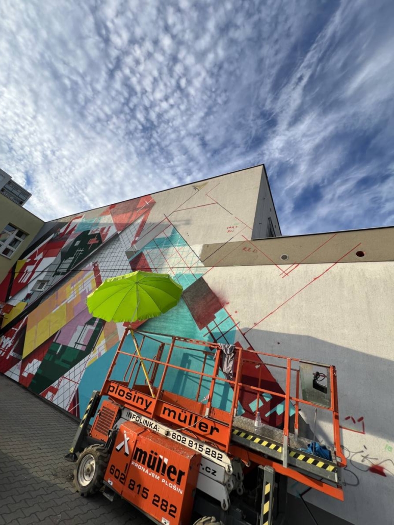 Popis malby: Kresba je inspirována malými kolážemi, které Zedz vytváří, s jejichž pomocí vytváří malé fyzické prostory nebo makety sloužící jako studie pro velká (nástěnná) díla. Inspiraci čerpá z děl některých abstraktních umělců z počátku minulého století (např. Piet Mondrian, Theo van Doesburg atd.) a rád tuto práci prodlužuje představami o tom, co bude následovat.