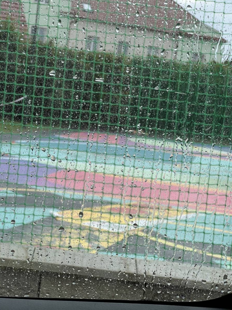 Nymburk 750 let a železnice, je téma tohodle barevně osvěženého hřiště v Nymburce, které si vzali do parády pánové Rascals Streetart (Projekt Ihrisko) – horizontální malba v celé své kráse.