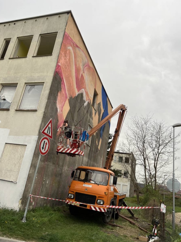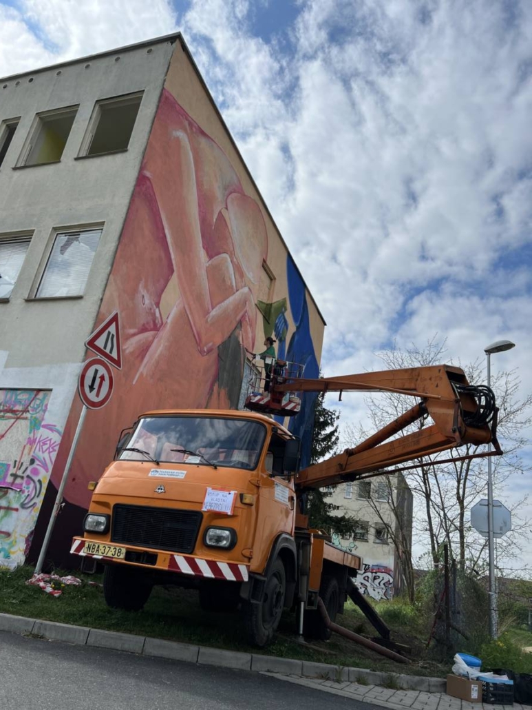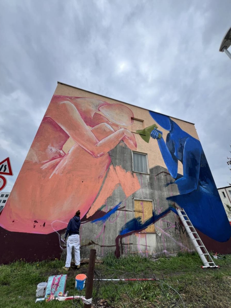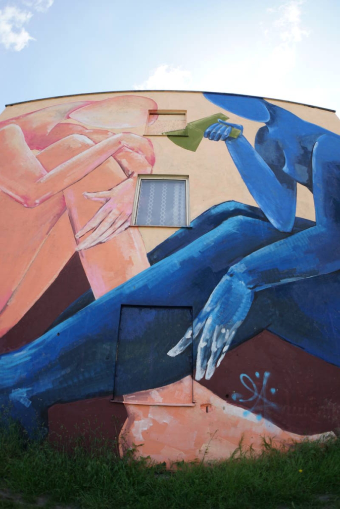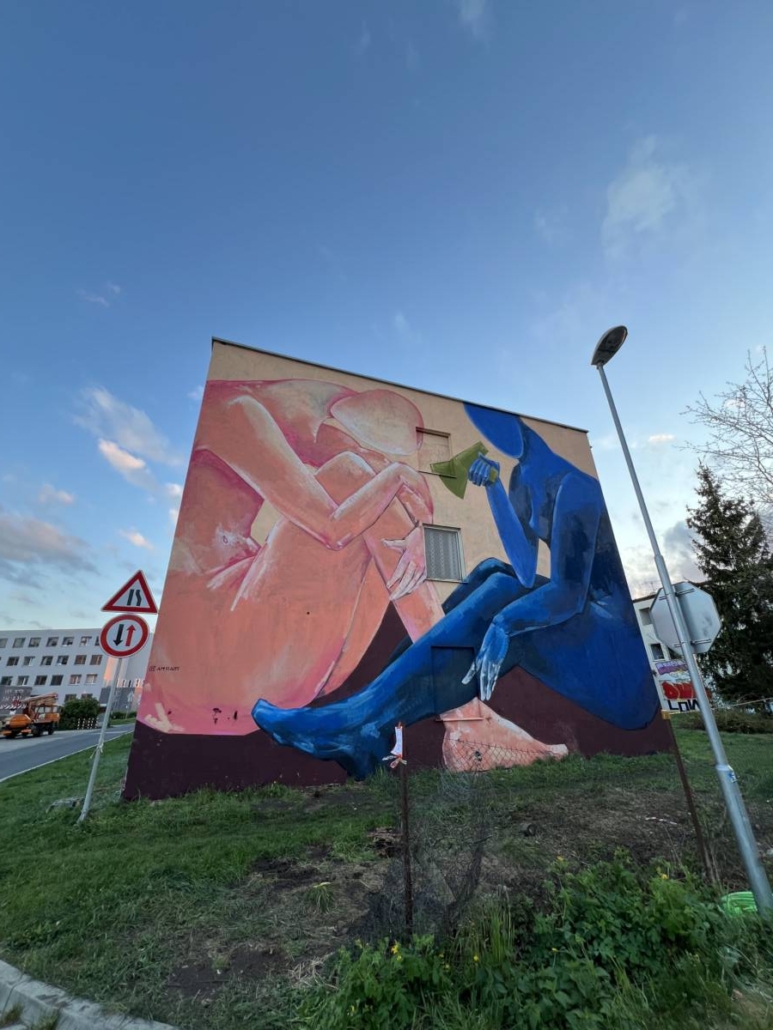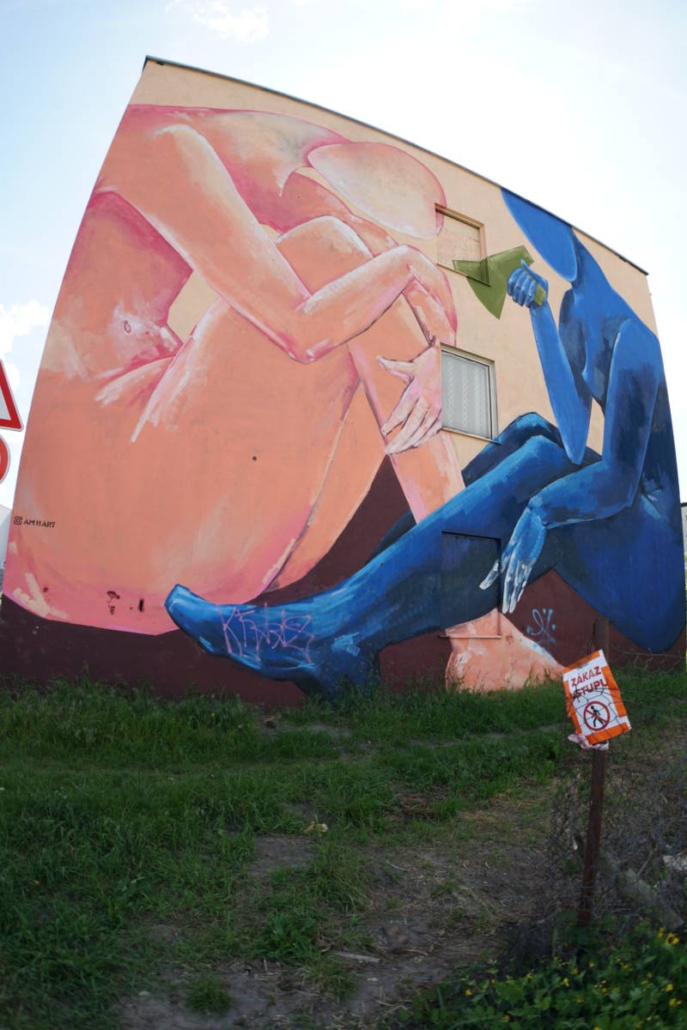 Vítězka open callu Ukrajinská umělkyně Anna Martynenko pojala stěnu pozicí dvou postav, které se spolu snaží komunikovat a najít společnou řeč.