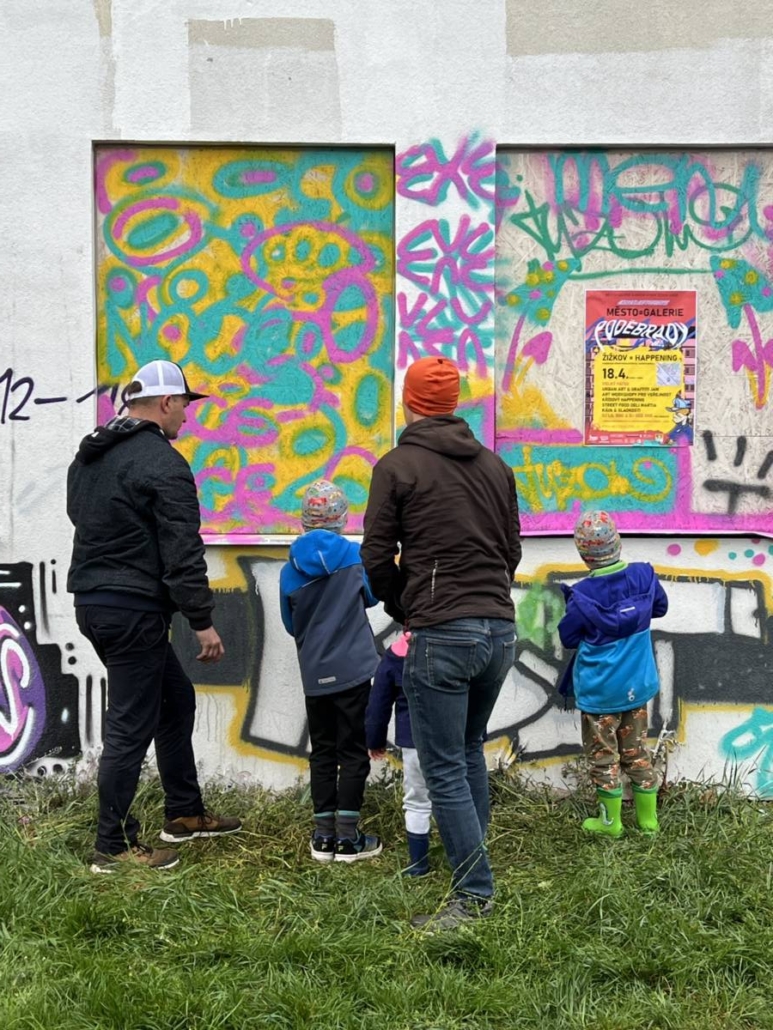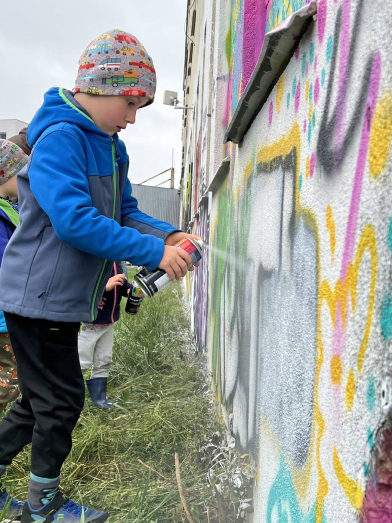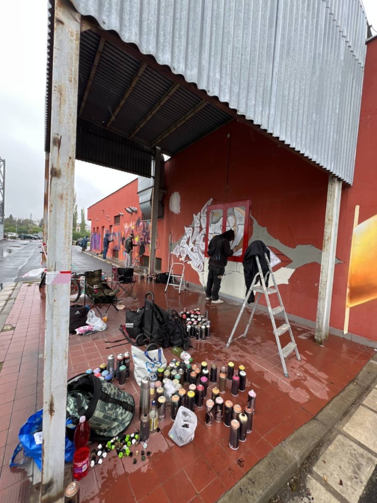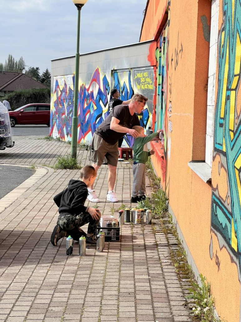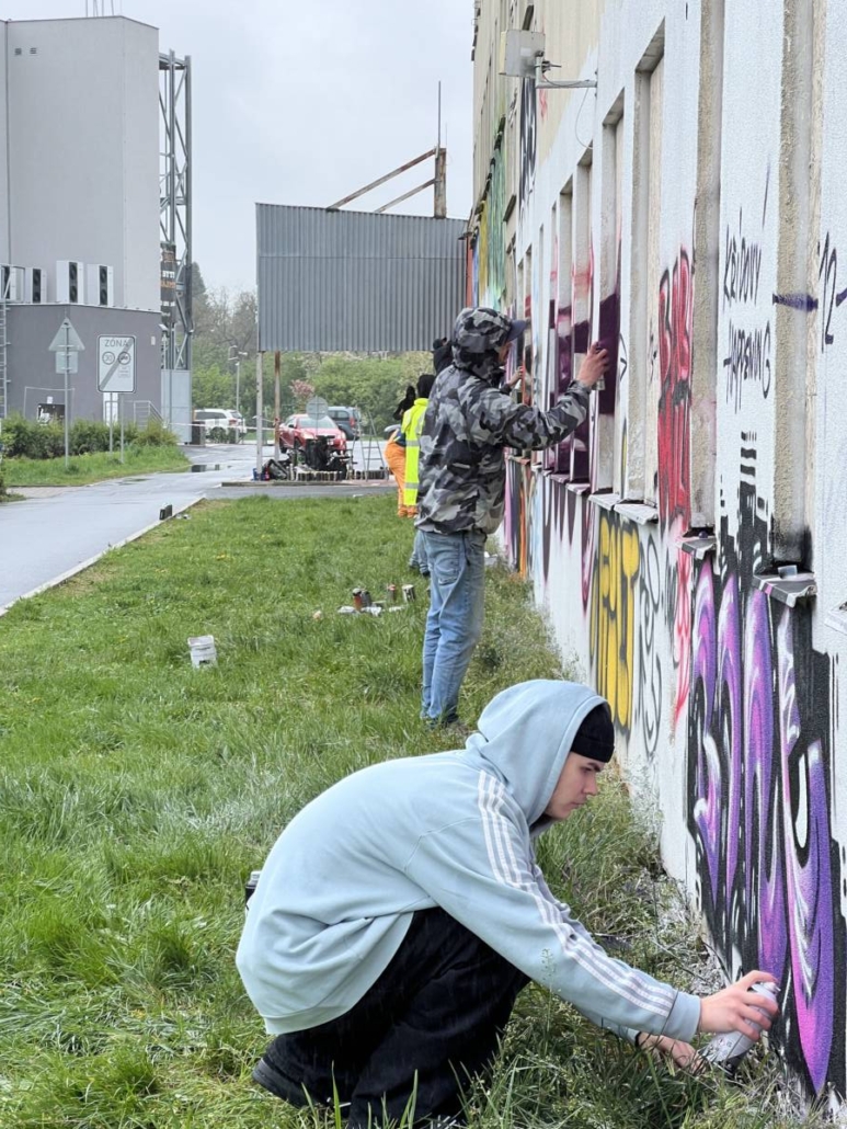 Mimo to, že si veřejnost, která se nenechala odradit počasím, mohla vyzkoušet práci se sprejem, tak se realizovala spousta maleb.