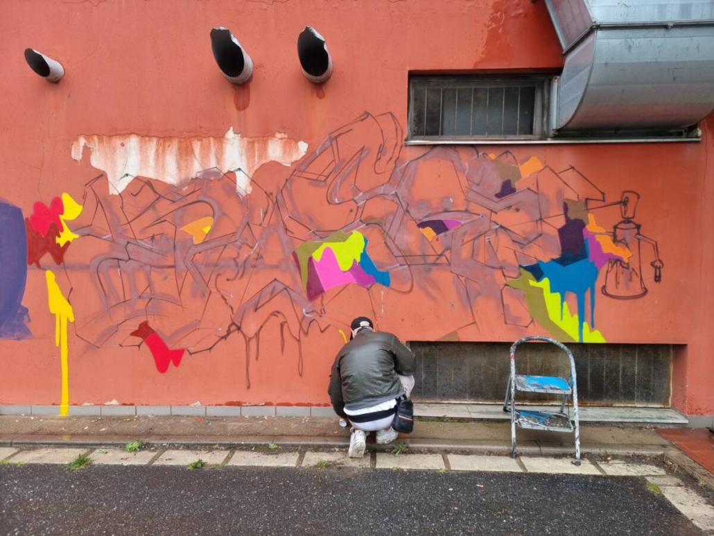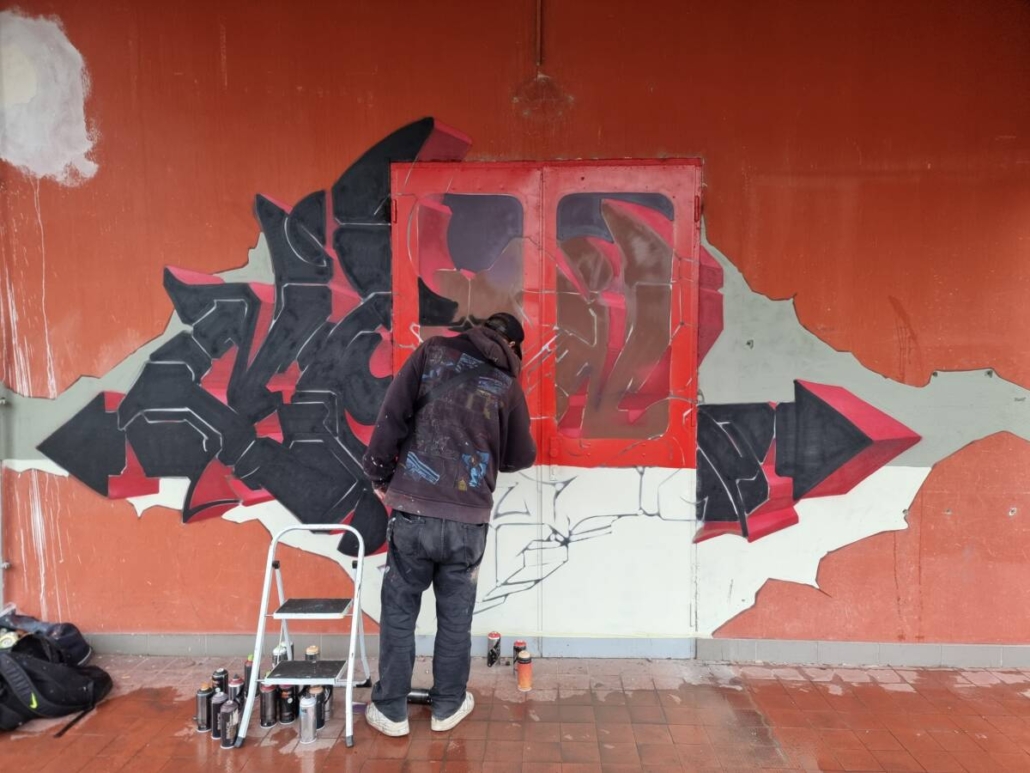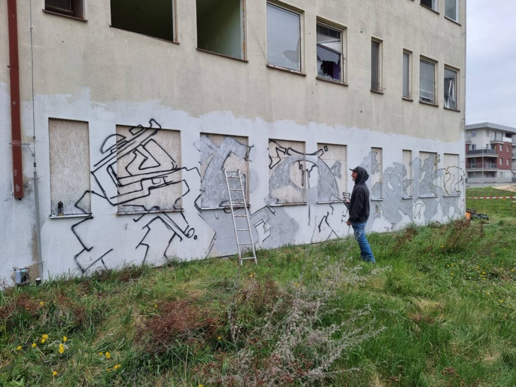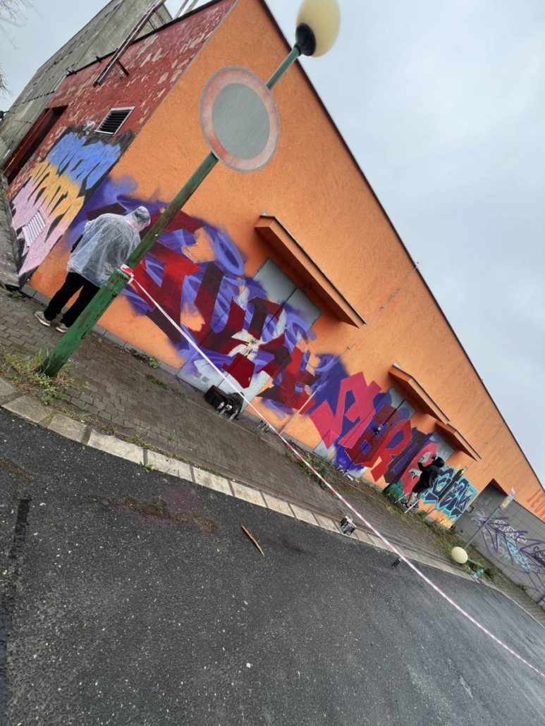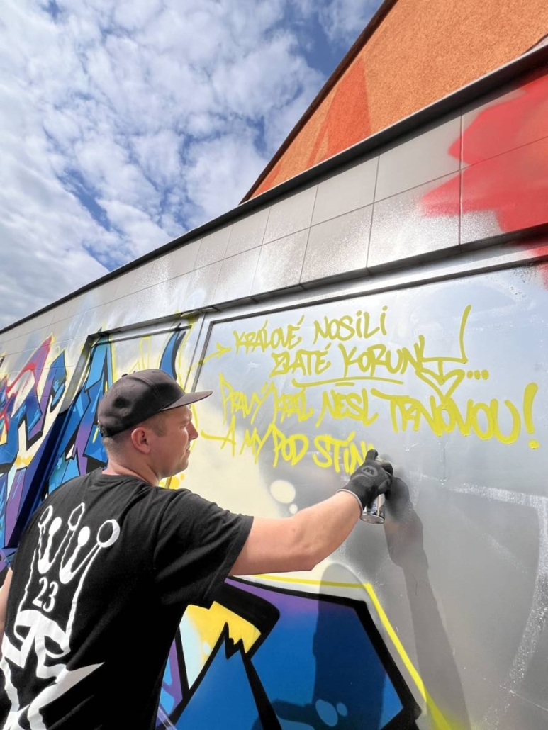 Mimo to, že si veřejnost, která se nenechala odradit počasím, mohla vyzkoušet práci se sprejem, tak se realizovala spousta maleb.